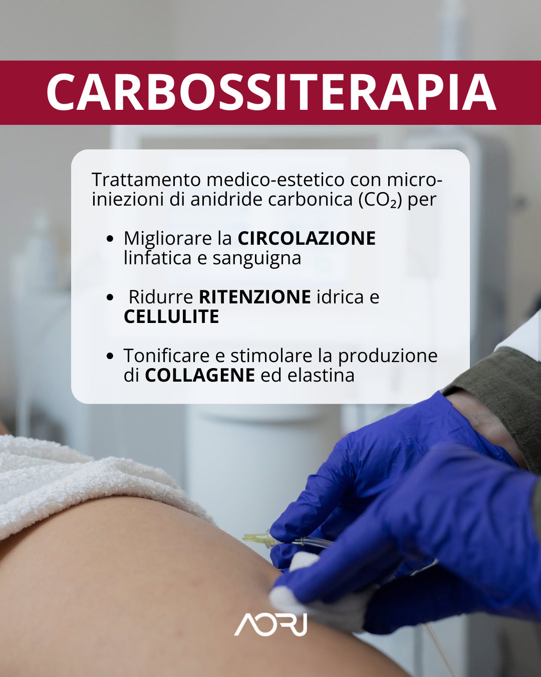 - Carbossiterapia → prevede micro-iniezioni di anidride carbonica (CO₂) che riattivano la circolazione linfatica e sanguigna, migliorano l’ossigenazione dei tessuti e favoriscono la riduzione di ritenzione idrica e cellulite.