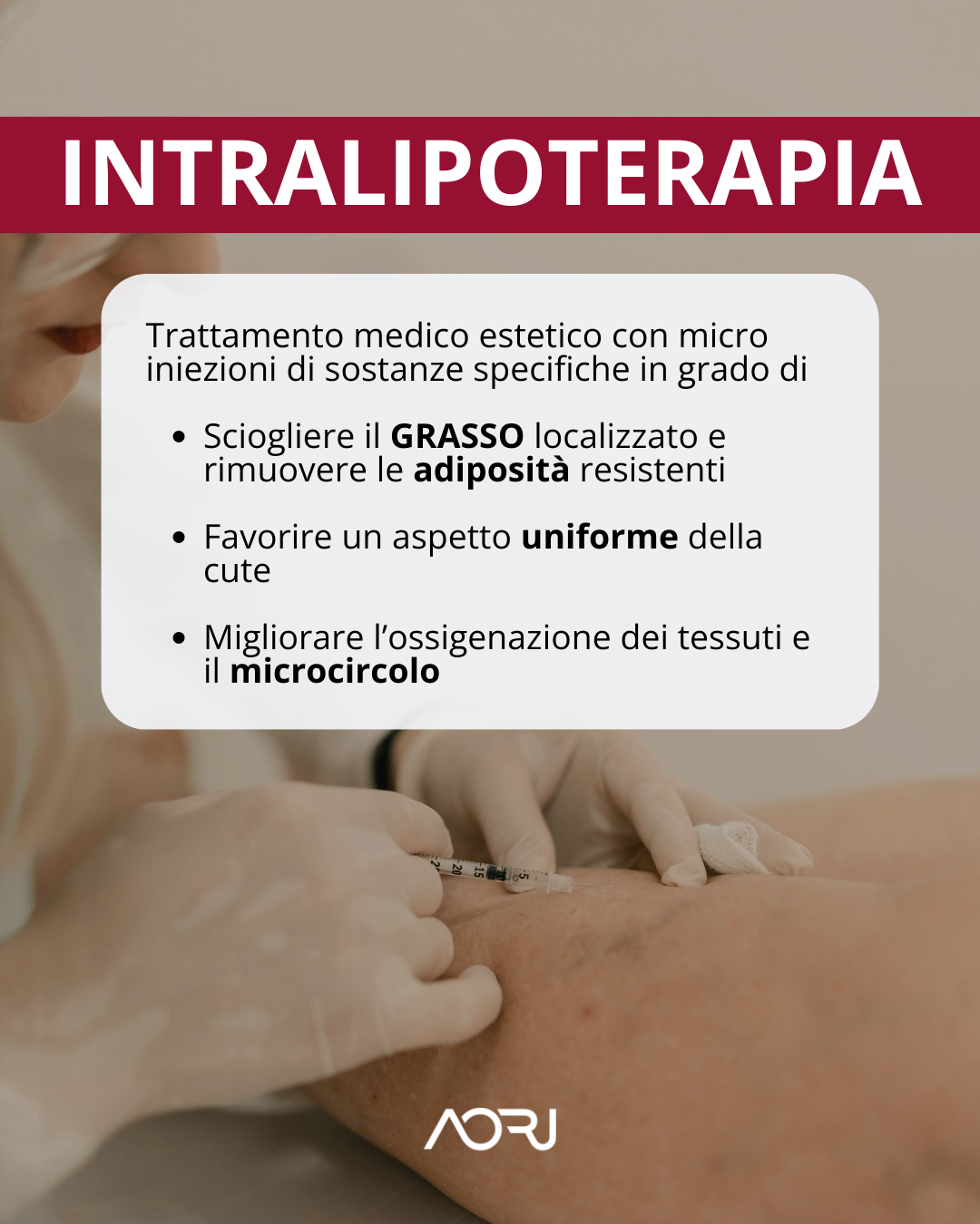 - Intralipoterapia → prevede l’iniezione di sostanze specifiche che sciolgono il grasso localizzato e migliorano il microcircolo, favorendo un aspetto più uniforme e compatto della pelle.